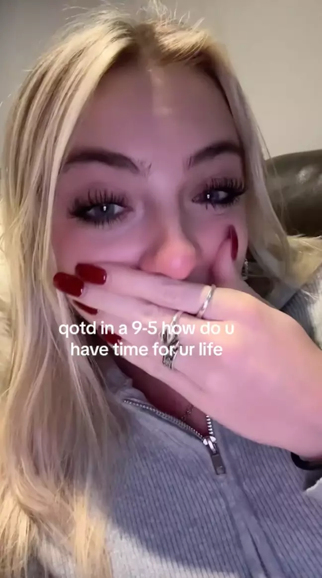 The TikToker clarified that it wasn't the job itself that she had a problem with, but rather having to work in the office and the long commute that sees her not returning home until more than an hour after the end of her shift.