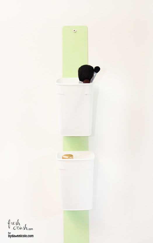 For those of you with limited counter space, these DIY makeup storage containers are just what you need. With a wall-mounted magnetic strip and white plastic containers, you can DIY this easy storage idea in under 10 minutes.