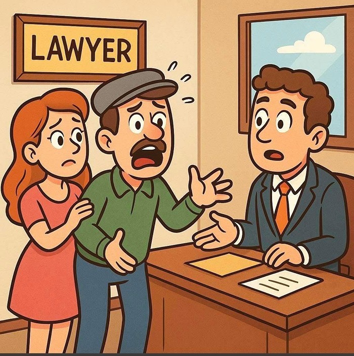 One day, he bursts into a lawyer’s office, looking panicked.