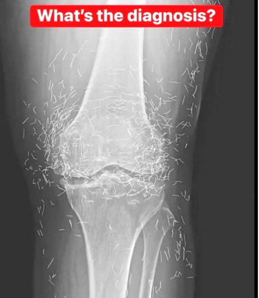 Doctors examining a 65-year-old South Korean woman’s X-ray were shocked to find hundreds of tiny gold acupuncture needles embedded in her knees.