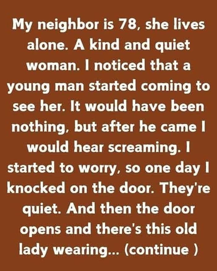 My neighbor is 78 and lives alone—she’s a lovely lady! Recently, a young man started visiting her, which seemed fine until one day I heard shouting from her house. Worried, I knocked on the door, but everything seemed calm inside. Then she opened the door wearing a karate outfit! She had decided to try something new, and the young man was teaching her karate moves!