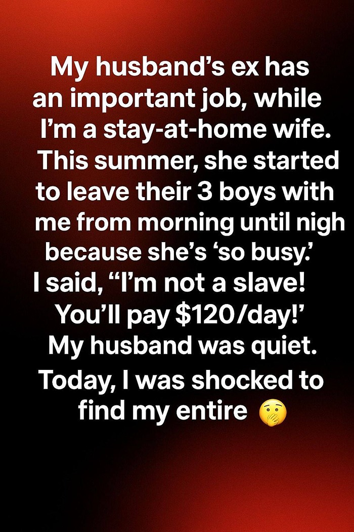 My husband’s ex began leaving their three boys with me every morning, saying her job kept her too busy. At first, I tried to help, telling myself it was temporary, but soon it felt like I was suddenly responsible for full-time childcare without agreeing to it.