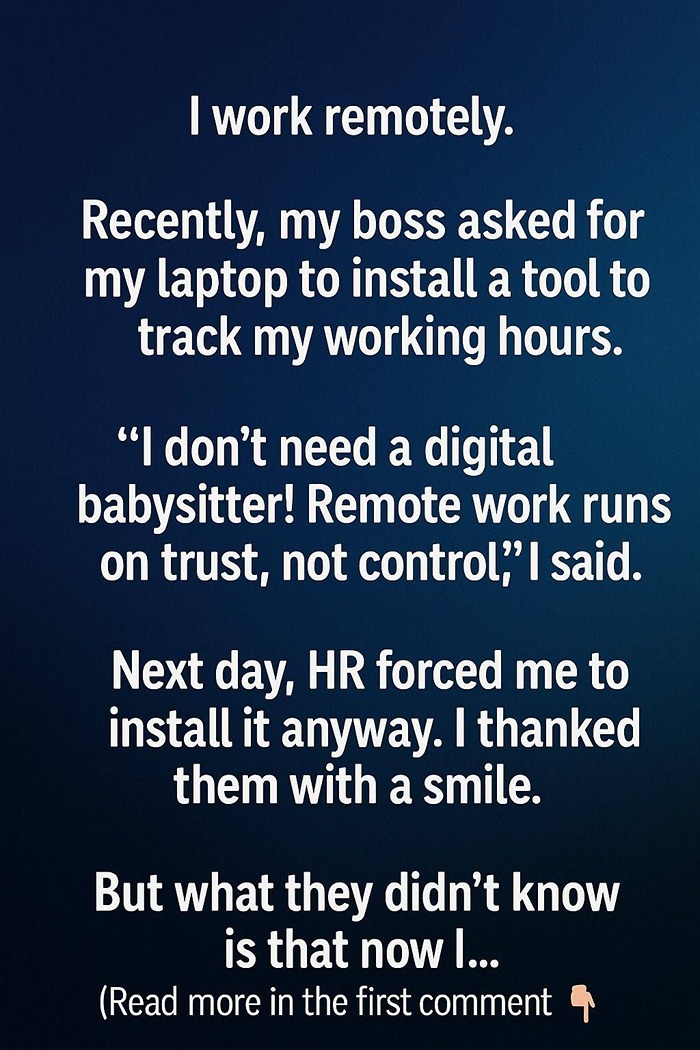 Remote work runs on trust, not control,” I said. Next day, HR forced me to install it anyway. I thanked them with a smile. But what they didn’t know is that now I…