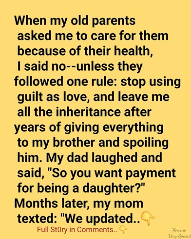 After that, everything went quiet. Months passed with no word from them. I thought they chose their pride instead of accepting my condition. Then one day, my mom texted me: “We changed the will.”