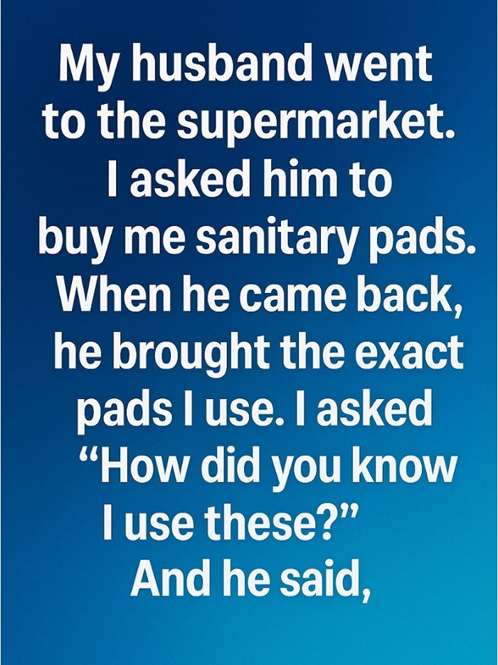 My husband went to the supermarket, and before he left, I asked him to buy me sanitary pads. When he came back, he placed the exact same brand I always use into my hands.