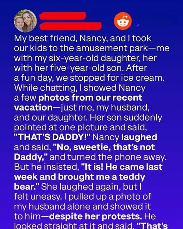 Sometimes, late at night, I look at Olive sleeping beside me, her breaths slow and steady. I think about how close I came to never knowing. If Connor hadn’t pointed at that picture, how many more years would I have spent living inside a beautiful lie?