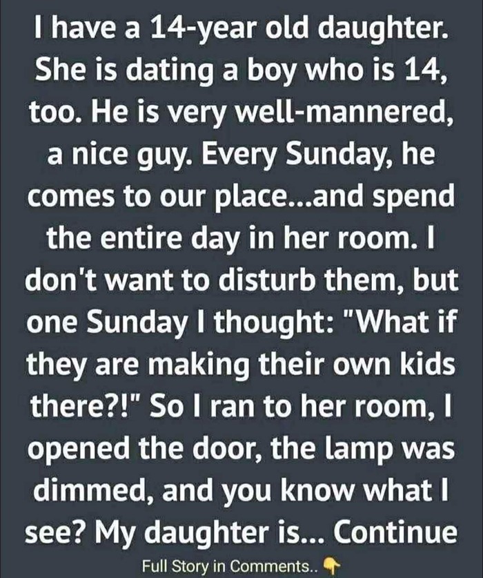 I’ve always trusted my fourteen-year-old daughter, and I like to believe she knows that. Still, when I heard soft laughter behind her closed bedroom door one Sunday, my imagination ran ahead of me. Her boyfriend, also fourteen, is polite and respectful, yet I wondered what if? I finally peeked in—just a crack—and found them cross-legged on the floor, surrounded by notebooks and math problems, completely absorbed in studying. The cookies I’d brought were untouched. She looked up, puzzled, and smiled. I closed the door, relieved, reminded that sometimes the truth is wonderfully simple.