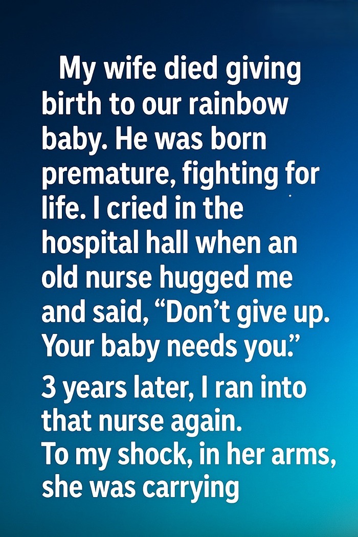 My wife died giving birth to our rainbow baby. He was born premature, fighting for life. I cried in the hospital hall when an old nurse hugged me and said, “Don’t give up.