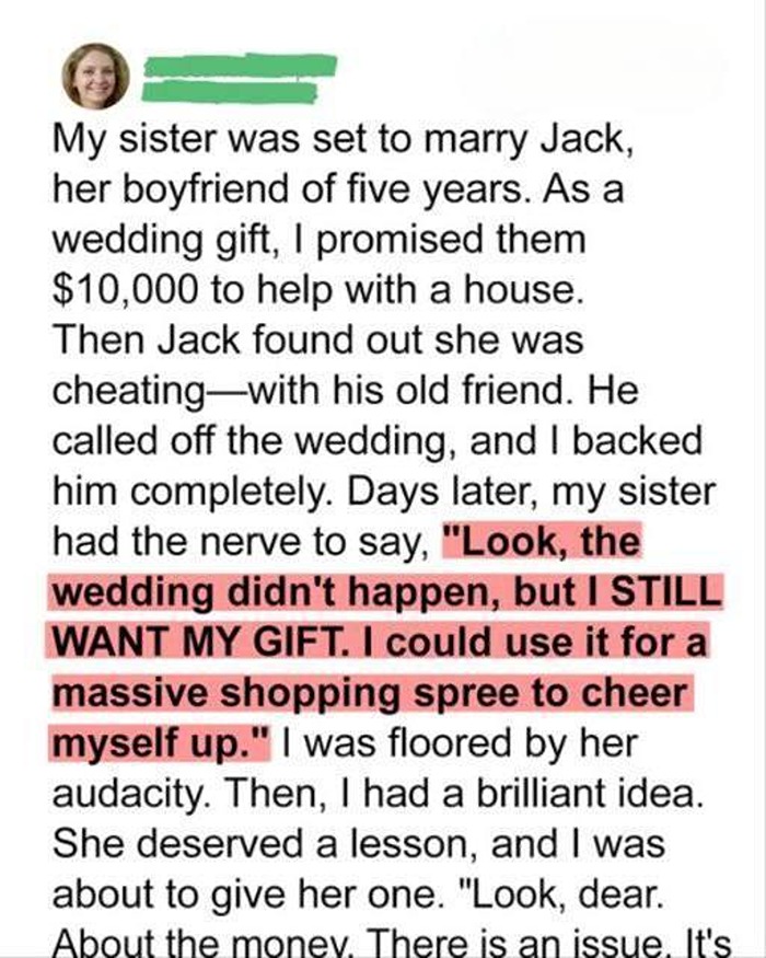 My sister was marrying Jack, her five-year boyfriend. As a wedding gift, I offered $10,000 for a house. Very happy for them. I was looking forward to a magnificent celebration of their love. The engagement was full of joy and plans. Venue, flowers, and invitations were ready, and it seemed like the start of a fantastic new chapter for them. One terrible chat ruined everything…..CONTINUE READING IN BELOW