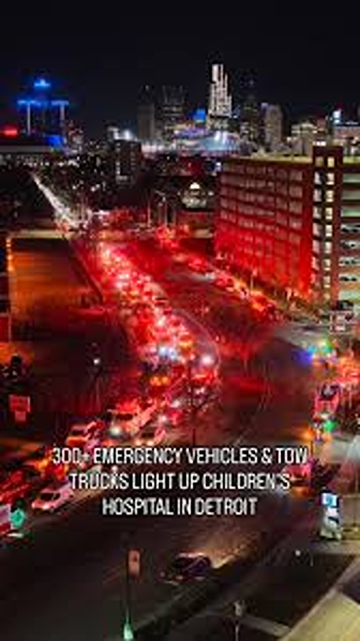 More than 300 ambulances, police cars, fire trucks, and tow trucks formed a massive convoy, their lights flashing in perfect harmony as they drove around a children’s hospital.