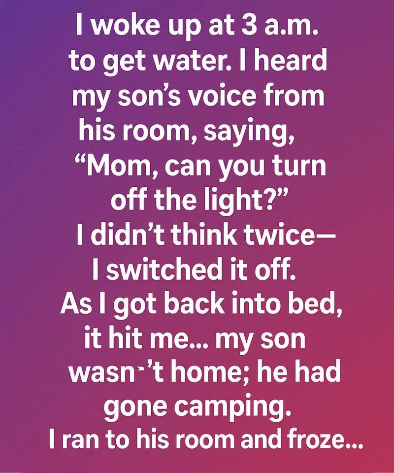 I woke at 3 a.m., thirsty and groggy. The house was silent, wrapped in the stillness of early morning. As I made my way to the kitchen for a glass of water, I suddenly heard my son’s voice calling from his room.