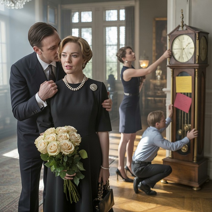 That was the first thing I heard when I came downstairs, still wearing black, still carrying the faint scent of funeral roses in my hair.