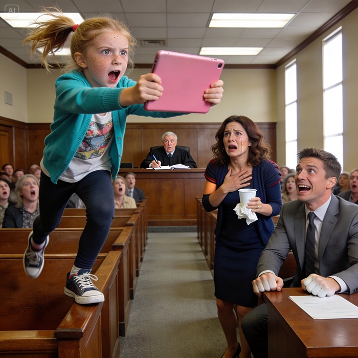 Lily walked forward, sneakers squeaking softly on the courtroom floor. She placed the tablet beside the judge’s bench, her small fingers trembling as she tapped the screen.