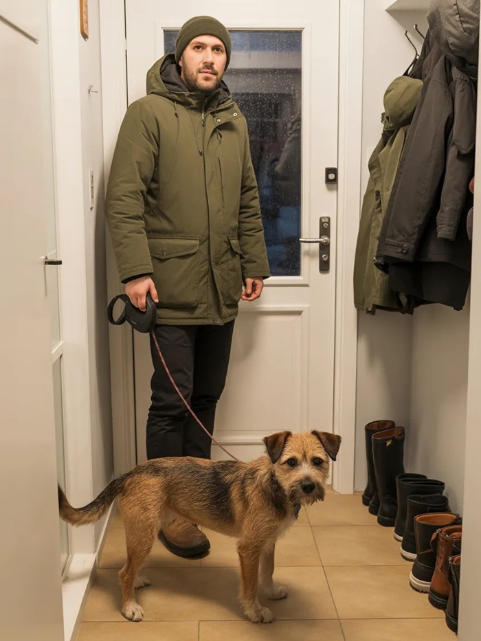 He was standing in the hallway, frozen. Daisy sat beside him, tail wagging as if nothing was wrong.