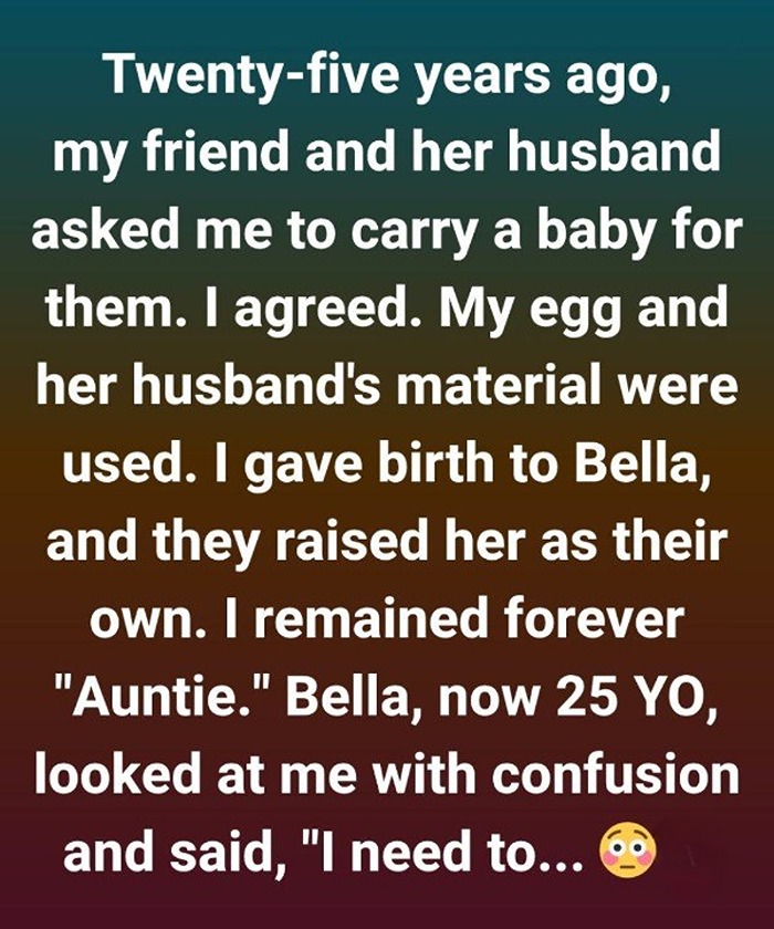 She had recently learned the full details of her conception — not only that I had carried her, but that we shared a genetic connection. What had once been a medical arrangement now carried personal implications for her sense of identity.