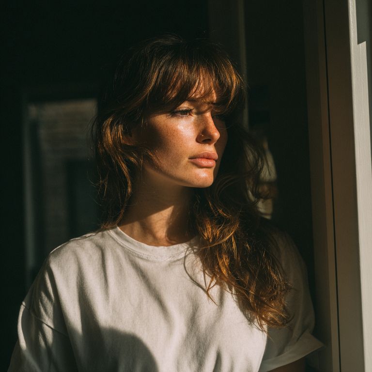A pensive woman standing on a porch | Source: Midjourney
